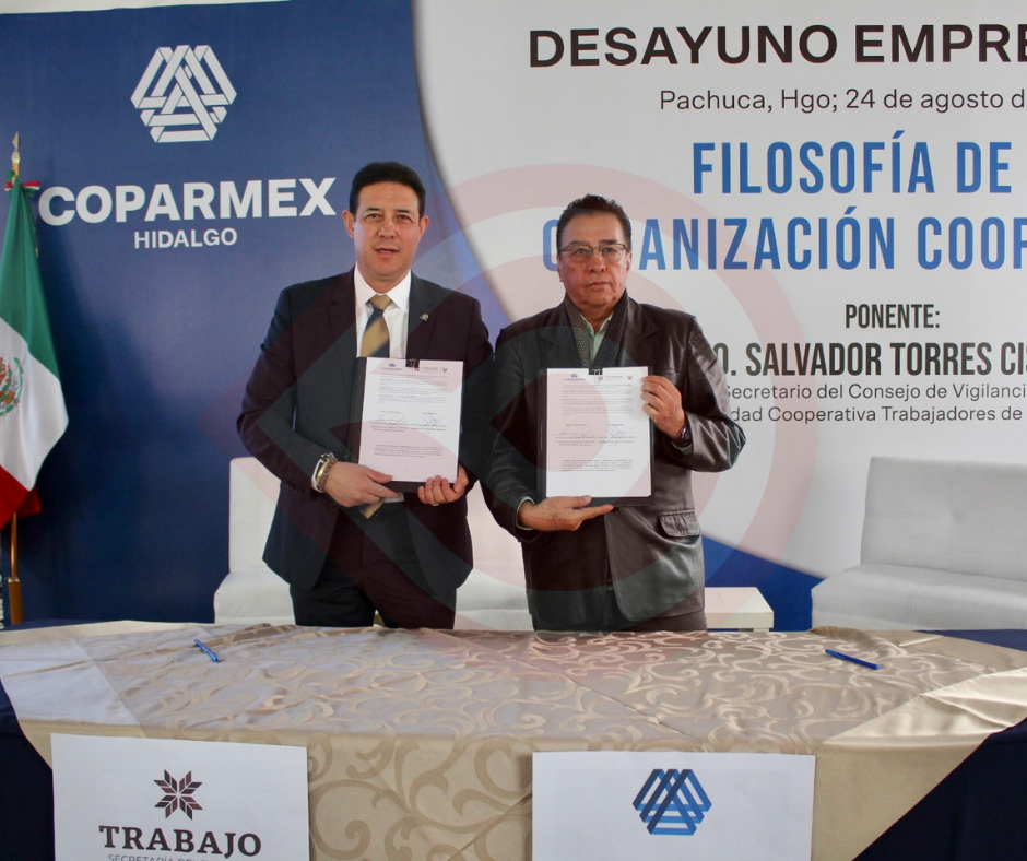 *Difundirán opciones de empleo formal; Coparmex reitera compromiso con trabajadores. Por Redacción/Zunoticia Pachuca de Soto, Hgo.- La Confederación Patronal de la República Mexicana, Coparmex Hidalgo, firmó un convenio de colaboración con la Secretaría del Trabajo y Previsión Social del Gobierno de Hidalgo. Juan Manuel Batres Campos, presidente de Coparmex Hidalgo, informó que este acuerdo establecerá… Seguir leyendo Coparmex Hidalgo firma convenio con la STPSH