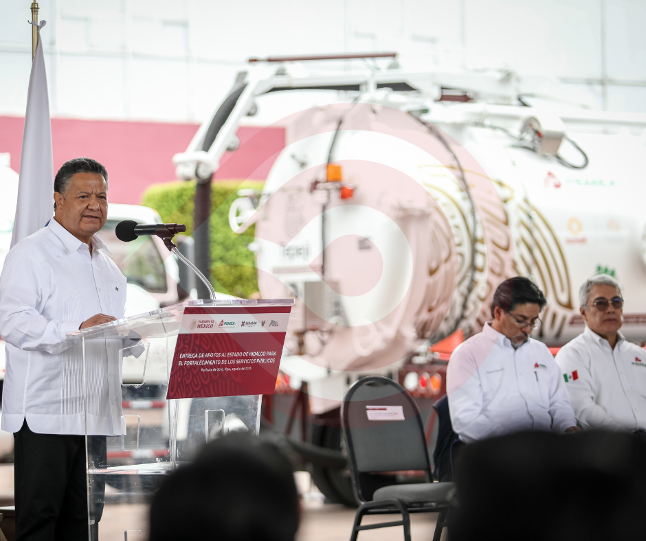 Pachuca de Soto, Hgo.- Con el propósito de fortalecer los servicios públicos y la reconstrucción de caminos en la entidad, el titular del Ejecutivo estatal, Julio Menchaca Salazar, recibió de manos del director de Petróleos Mexicanos (Pemex), Octavio Romero Oropeza, productos petrolíferos y unidades para servicios que representan una inversión de más de 60 millones de pesos (mdp).