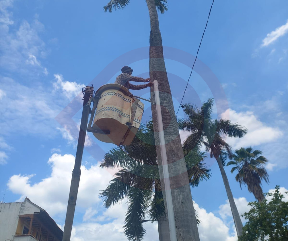 Las labores, están a cargo de empleados del área de Mantenimiento y Logística Municipal, cuyo director es Salvador Rodríguez Orta; quienes, para tal efecto, en primer término, colocaban la red de electrificación, elemento necesario.