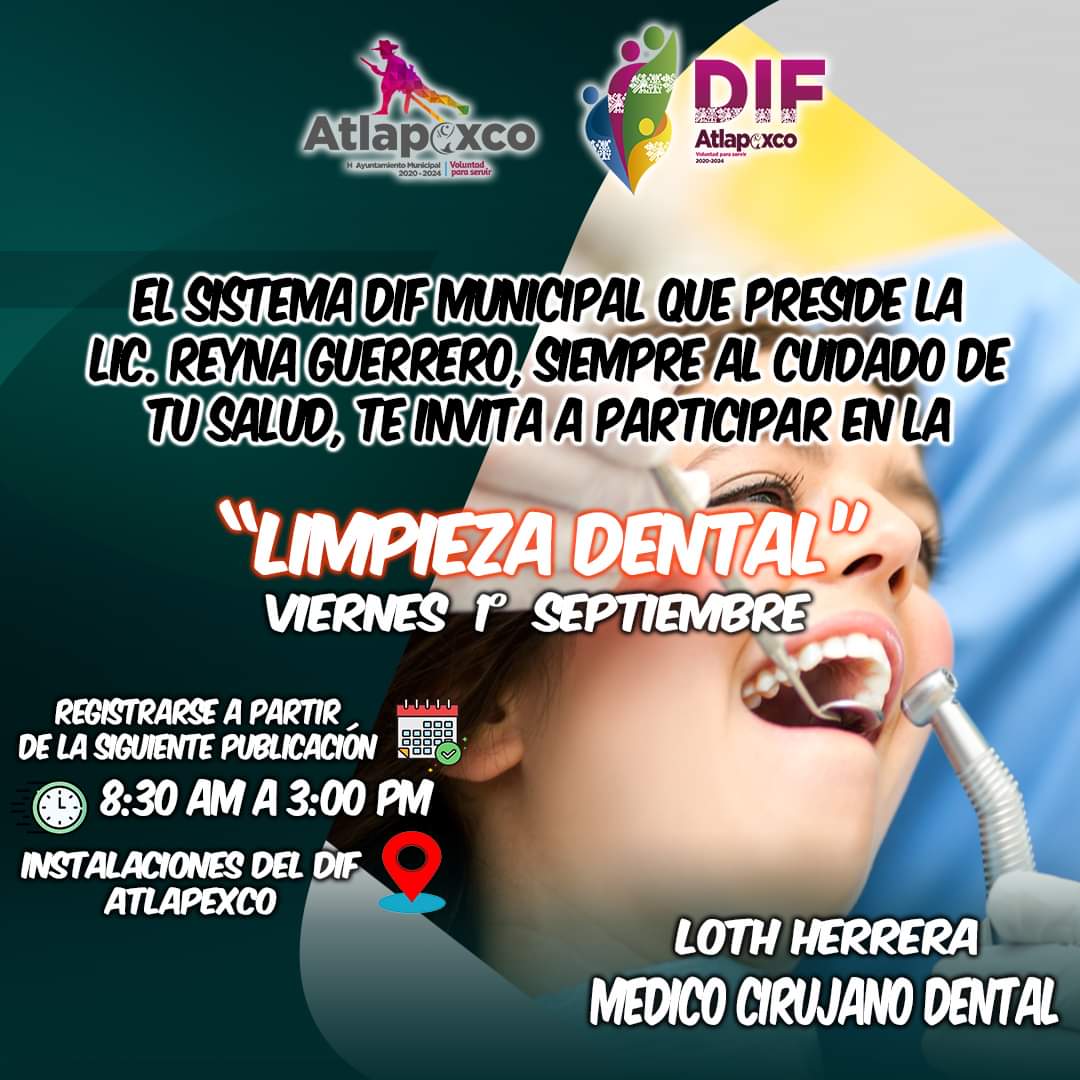Por Karen Rivera/Zunoticia Atlapexco, Hgo.- Atendiendo las necesidades principales de la población, sobre todo en materia de salud, el Sistema Municipal para el Desarrollo Integral de la Familia (SMDIF), a cargo de Reyna de la Paz Guerrero, estará llevando a cabo la campaña de limpieza dental, este viernes en punto de las 8:30 de la… Seguir leyendo Este viernes se realizará la campaña de limpieza dental