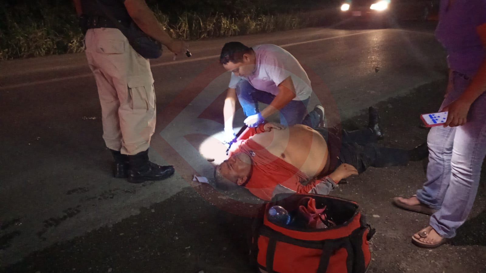 Al sitio llegaron elementos de Seguridad Pública Municipal y personal con una ambulancia del Ayuntamiento de Chalma, para atender y trasladar a un hospital al paciente, ya que no había ambulancias disponibles de la Cruz Roja Mexicana de la ciudad de Huejutla y la unidad del Heroico Cuerpo de Bomberos está fuera de servicio por una falla mecánica.