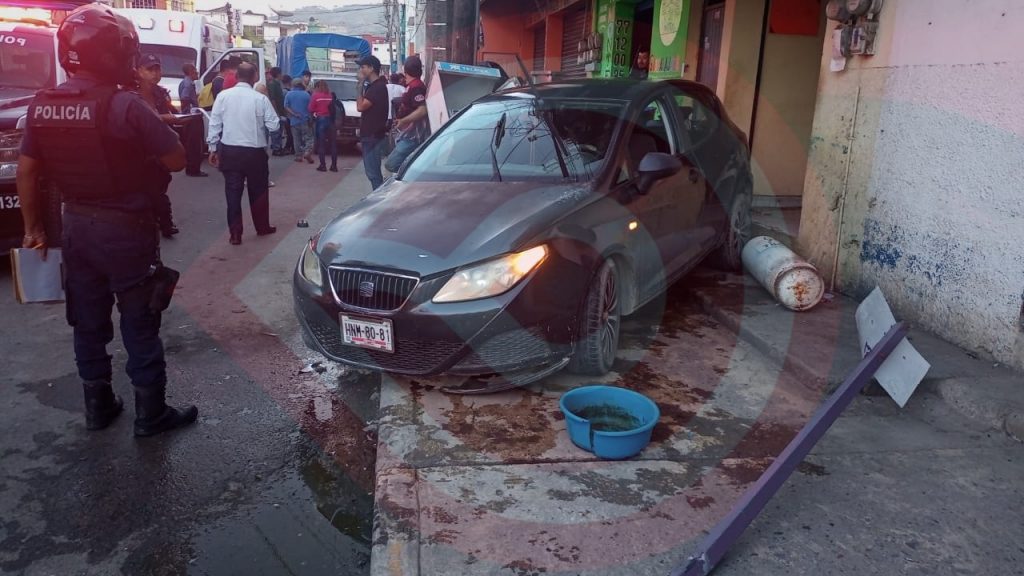Derivado al brutal encontronazo, dos de las unidades motoras, terminaron impactadas contra dos locales comerciales y causaron daños a un puesto de tacos, así como una caseta telefónica pública.