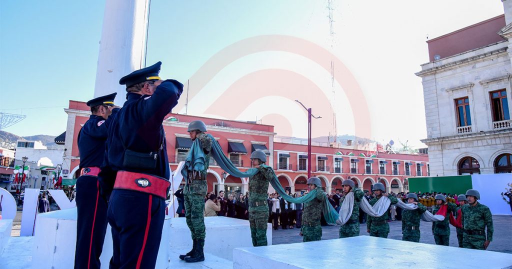 Pachuca de Soto, Hgo.- El secretario de Desarrollo Económico, Carlos Henkel Escorza, acompañado por el comandante del 96º Batallón de Infantería, Gibrán Jalil Díaz del Castillo Méndez, y el coordinador estatal de la Guardia Nacional, José Francisco González Hernández, encabezó la ceremonia del ‘Lunes Cívico’ realizada en la plancha de la Plaza Juárez de Pachuca.