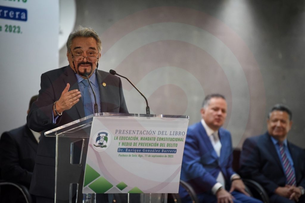 Pachuca de Soto, Hgo.- El gobernador Julio Menchaca Salazar asistió a la presentación del libro “La educación, mandato constitucional y medio de prevención del delito”, donde reiteró el compromiso de su administración de impulsar al sistema educativo como una herramienta de desarrollo social.