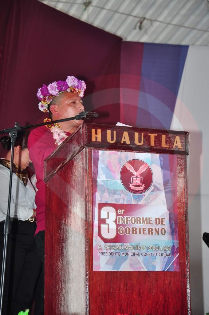 Huautla, Hgo.- Con la humildad y sencillez que lo caracteriza, el presidente municipal, Artemio Martínez Rebolledo, rindió su tercer informe de gobierno, en el cual llamó a la población a sumar esfuerzos y continuar, para seguir fortaleciendo a esta cabecera municipal.