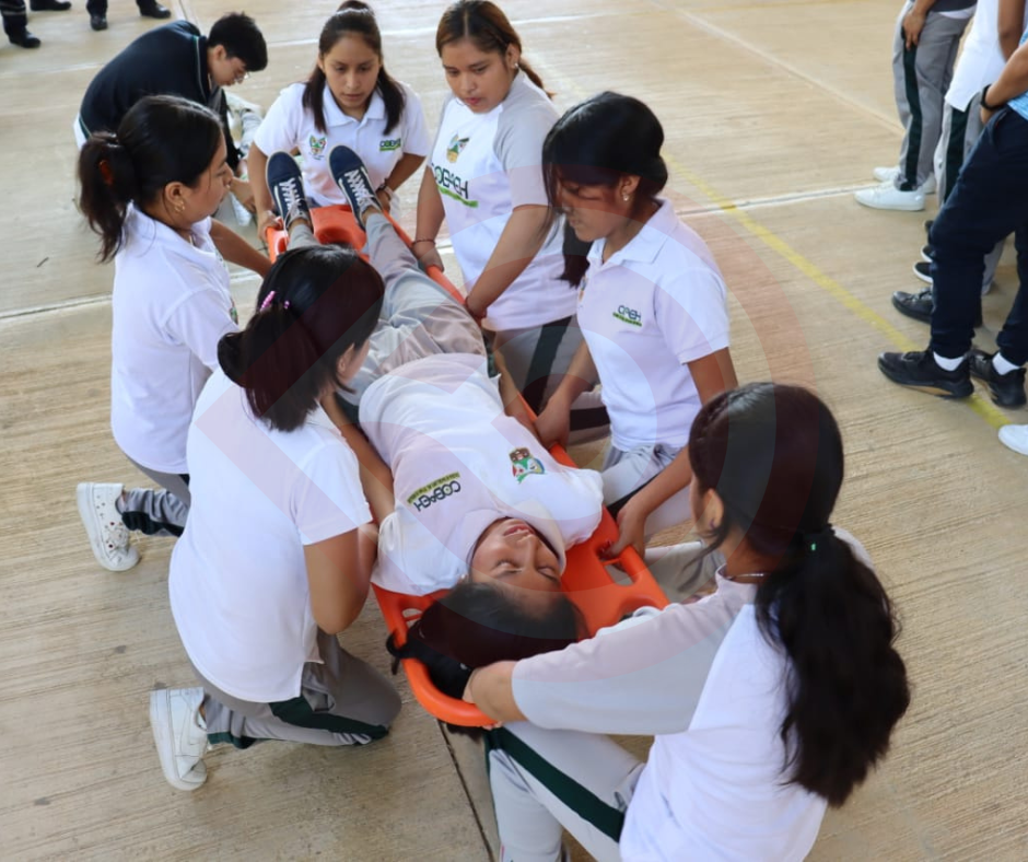 La citada actividad se llevó a cabo en el plantel COBAEH Xochiatipan, lugar donde docentes y alumnado desarrollaron los protocolos correspondientes, con la colaboración del instructor de bomberos de Huejutla, Carlos Francisco Hidalgo Contreras.