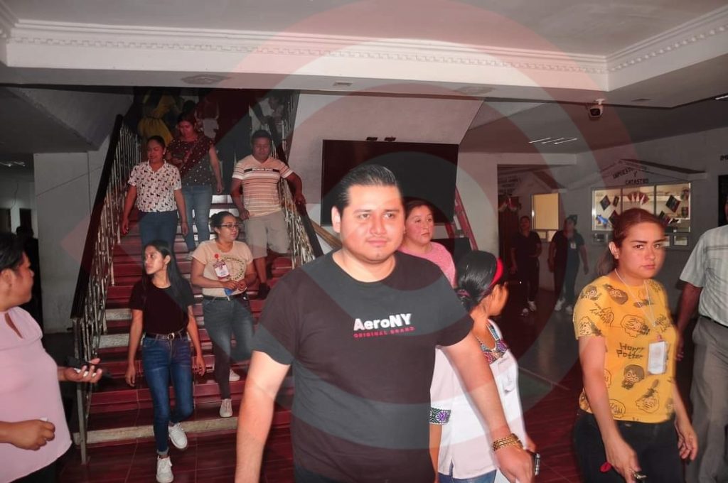 Bajo la dirección de Protección Civil, a cargo de Luis Ángel Torres López, en coordinación con Seguridad Pública Municipal, el área de Salud, la Unidad Básica de Rehabilitación (UBR), el personal del ayuntamiento participó en el protocolo del simulacro contra sismos, el cual consistió en evacuar a todas las personas dentro de la comuna hasta llegar al punto de reunión, donde inmediatamente los elementos de Protección Civil actuaron para realizar el rescate de una persona, misma que fue bajada en la camilla.
