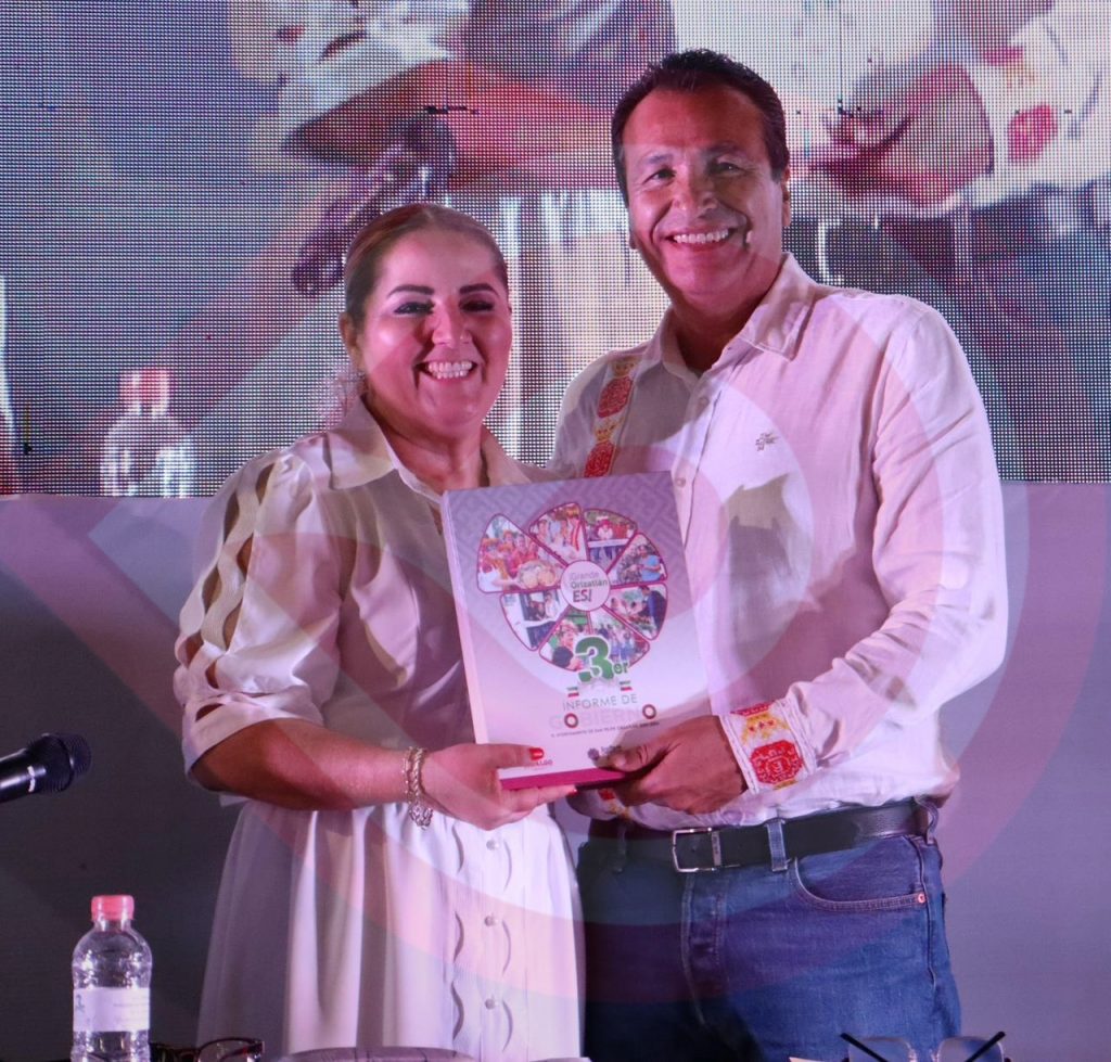 San Felipe Orizatlán, Hgo.- En un acto de transparencia y rendición de cuentas ante la ciudadanía, esta tarde la Presidente Municipal, Erika Saab Lara, presentó su Tercer Informe de Gobierno, acompañada por el Secretario de Contraloría del Estado, Álvaro Bardales Ramírez, en representación del Gobernador de Hidalgo, Julio Menchaca Salazar.