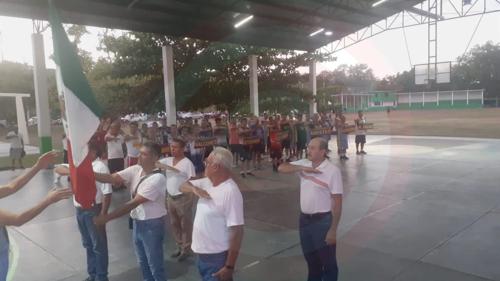 Huejutla, Hgo.- Autoridades municipales, mesa directiva y padrino del 6to. torneo de liga 2023 de la Liga de Básquetbol de Veteranos de Colalambre de Huejutla, Hidalgo (LBVCHH), inauguraron el torneo, contando con los jugadores de los 7 equipos participantes.