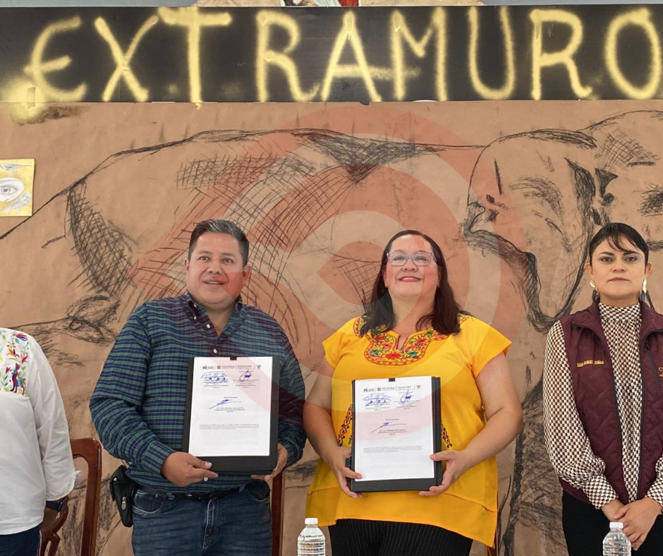 En el auditorio del municipio, Meza Escorza llevó a cabo una firma de convenio de colaboración con el alcalde Alejandro Dionicio Velasco para iniciar el programa del ciclo septiembre – diciembre 2023 de las disciplinas de danza folclórica y música en guitarra y violín.