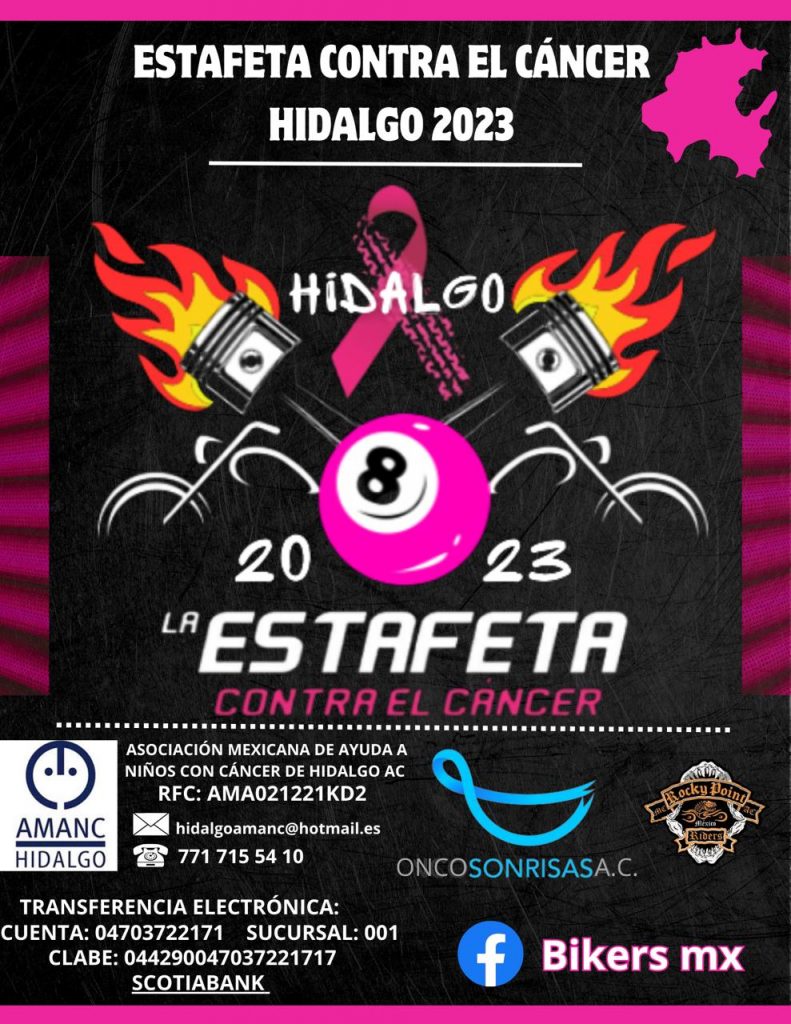 Huejutla, Hgo.- El Presidente del Club de Motociclistas Comanders Huejutla y encargado de la Estafeta en Hidalgo, Zoroastro Cabrera Teodoro, confirma que actualmente se realizan acciones de colecta económica entre la población, denominada Estafeta contra el Cáncer 2023 y a nivel nacional se aplica con la idea principal de ayudar a los estados que tienen, especialmente, niños con cáncer, y que se trabaja, principalmente, con las organizaciones sin fines de lucro.