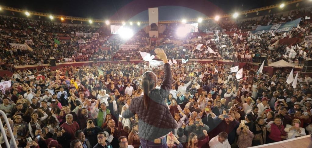 Pachuca, Hgo.- En la Plaza de Toros Vicente Segura la Coordinadora Nacional de los Comités en Defensa de la Cuarta Transformación, Claudia Sheinbaum Pardo, ante un lleno pletórico de hidalguenses provenientes de todos los rincones del Estado para ser testigos de la firma del Acuerdo de Unidad.