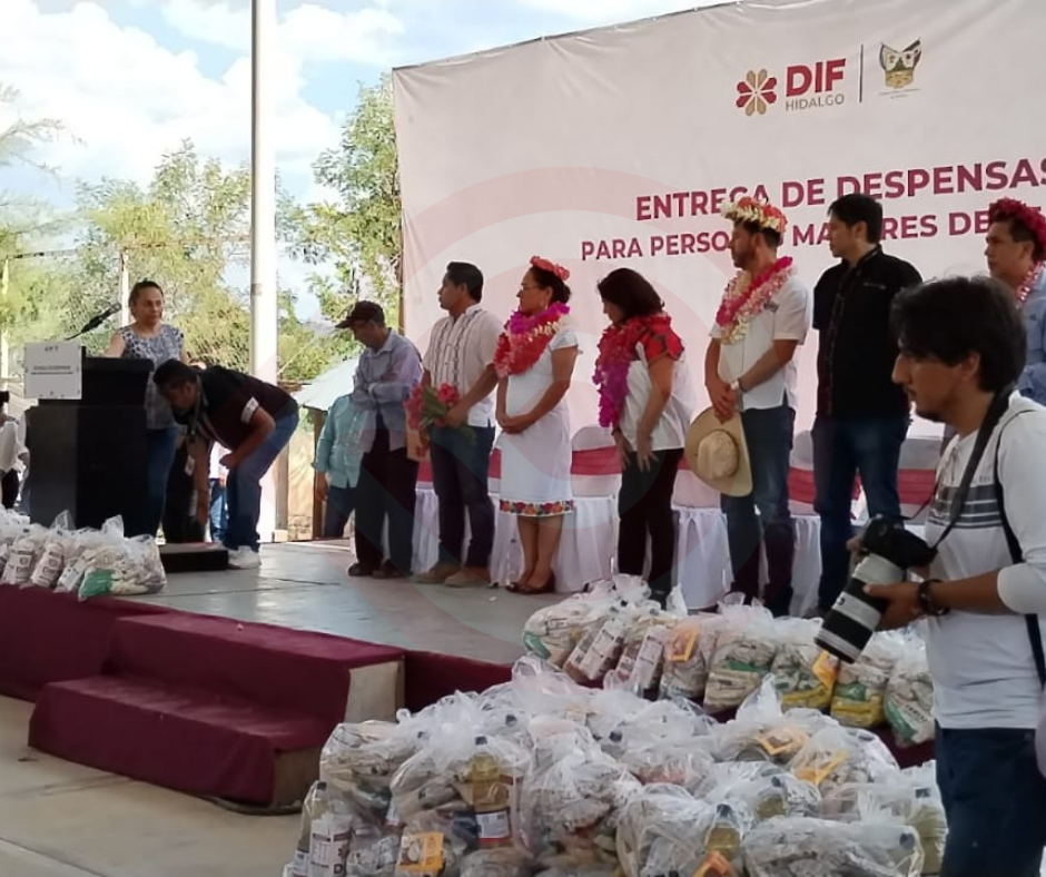 Yahualica, Hgo. – La presidenta del Sistema Estatal DIF, Edda Vite de Menchaca, la tarde de este viernes realizó la entrega de apoyos a los adultos mayores de la cordillera de Oxceloco, la acompañó la presidenta del DIF Municipal Enfermera Petra Martínez Pérez.