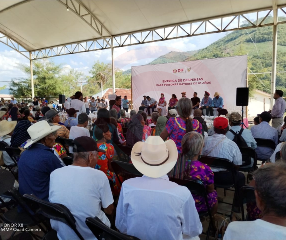 El acto tuvo lugar en la galera de la primaria de Oxceloco, hasta donde se dieron cita autoridades delegacionales, ejidales y personas de la tercera edad, de 9 comunidades para recibir sus apoyos. Así la presidenta del DIF estatal entregó más de mil despensas para personas mayores de 65 años.