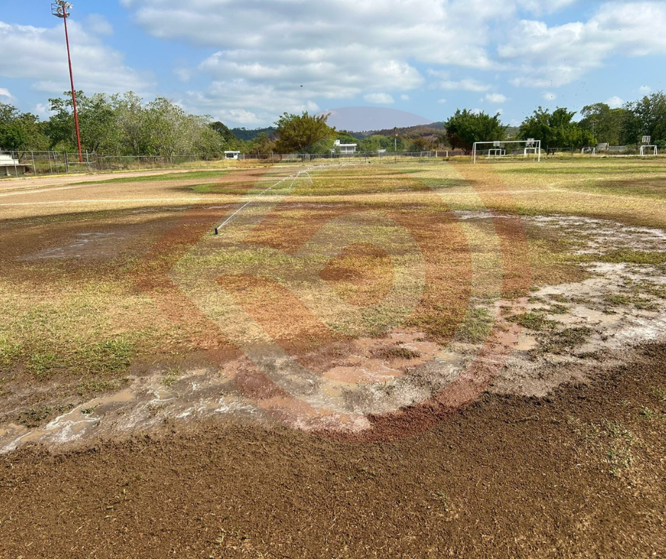 Huejutla, Hgo.- Empleados de la Coordinación Municipal del Deporte continúan rehidratando las canchas de fútbol de esta ciudad, como se puede observar en la imagen.