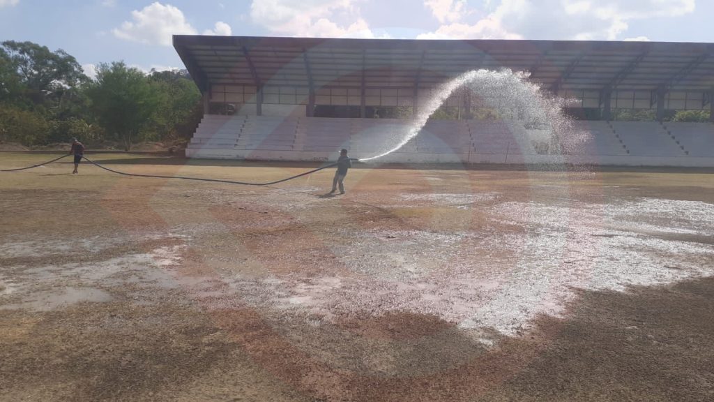 Por José Luis Romero Ruiz/Zunoticia Huejutla, Hgo.- Empleados de la presidencia municipal continúan rehidratando las canchas de fútbol, en esta ocasión correspondió regar la cancha de la Unidad Deportiva “Colalambre” como se observa en la imagen.