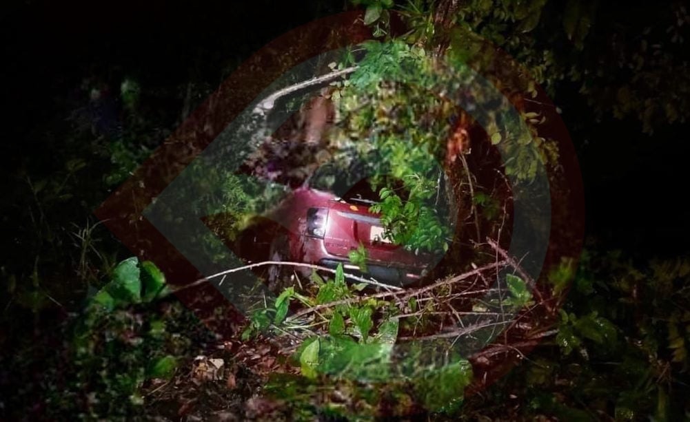 Derrapa camioneta y cae a un barranco