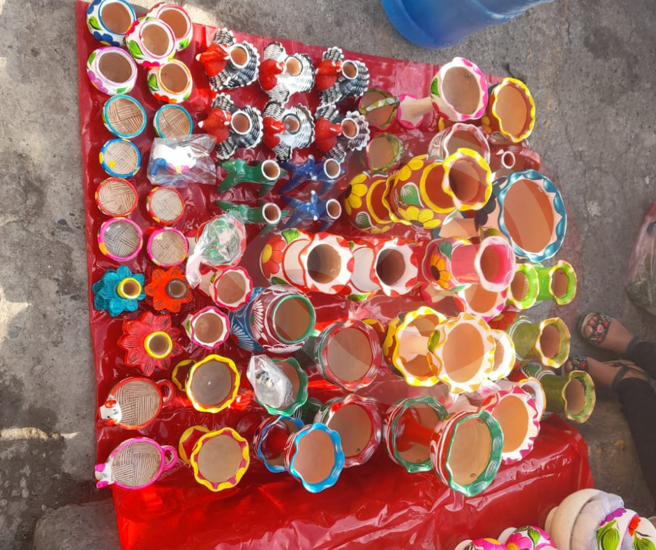 Al respecto, vendedoras del producto comentaron que los más utilizados y por ende requeridos durante la tradicional celebración son floreros; copaleros; ocarinas llamadas cocohuiles; candeleros en forma de caballitos; y juguetes que colocan en los altares de ofrenda para los niños difuntos.