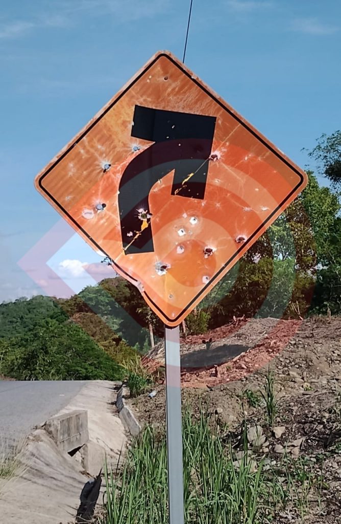 Huejutla, Hgo.- Personas, hasta el momento desconocidas, balearon un señalamiento vial ubicado en el tramo de la carretera estatal que conduce a la localidad de Panacaxtlán, perteneciente a este municipio.