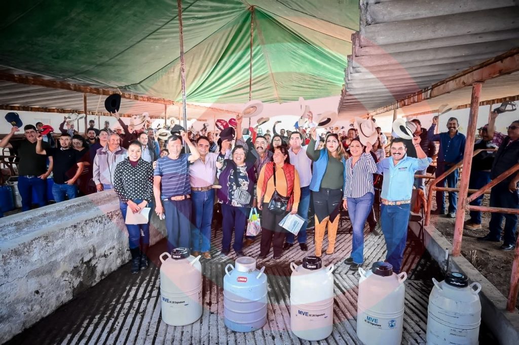 Acatlán, Hgo.- El titular de la Secretaría de Agricultura y Desarrollo Rural (Saderh), Napoleón González Pérez, entregó apoyos dentro del componente Mejoramiento Genético Pecuario del programa de inseminación artificial de ganado lechero con semen sexado.