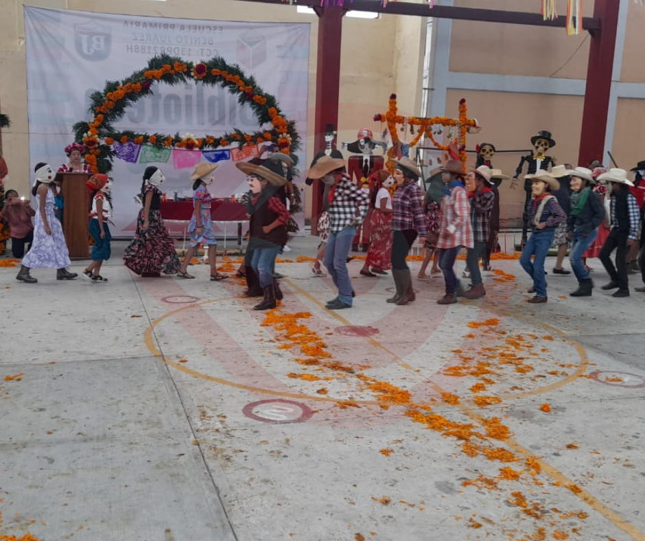 El tradicional arco, la ofrenda y las cuadrillas de disfrazados fueron los puntos elementales de esta gran fiesta representada por alumnos, maestros y padres de familia de esta primaria, ubicada en la zona Centro de Huejutla.