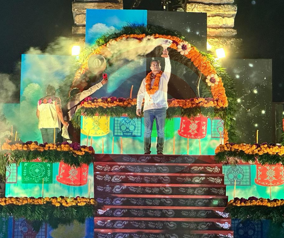 Ayer por la noche, el presidente municipal, Daniel Andrade Zurutuza y el contralor estatal, Álvaro Bardales Ramírez, quien asistió en representación del gobernador del estado Julio Menchaca Salazar, inauguraron oficialmente las fiestas del Xantolo 2023.