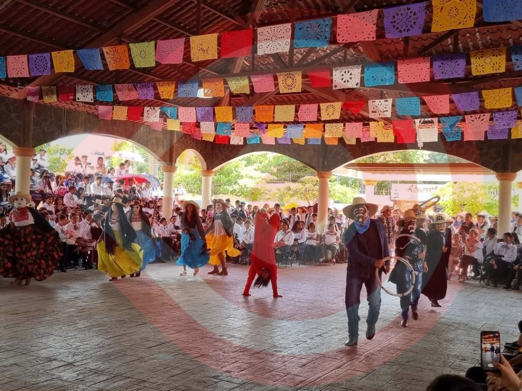 En el marco de las festividades de Xantolo 2023, alumnas, alumnos y personal del plantel participaron en la demostración de cuadrillas, actividad en la cual bailaron diferentes sones de disfrazados con vistosos sombreros y máscaras.