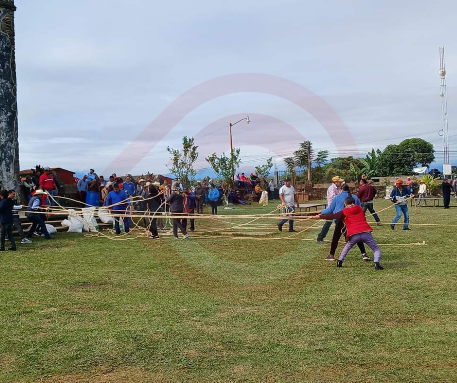 El acto inició alrededor de las 9:00 de la mañana, con la concentración de personas, quienes llevaban sus rollos de lazos de ixtle, más tarde comenzó la bajada de las campanas: la mayor, la intermedia y la pequeña para cambiarles los lazos que las habrán de sostener en los próximos 365 días.