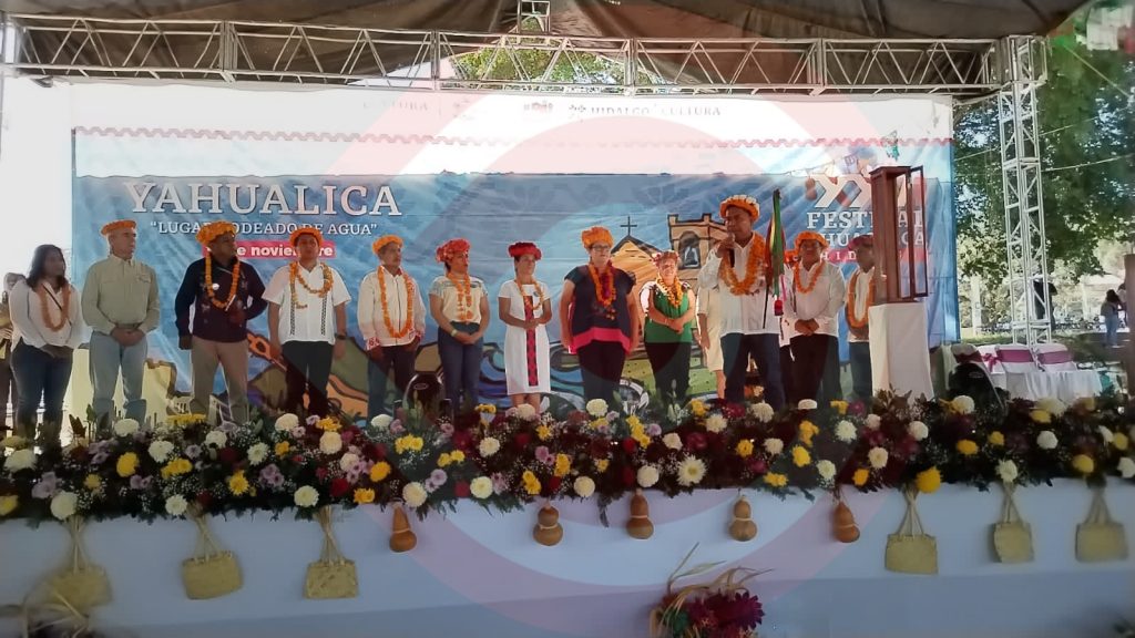 Yahualica, Hgo.- La Secretaria de Cultura, Tania Meza Escorsa y el alcalde, Licenciado Senón Navarro Morales, al mediodía de este viernes inauguraron el XXVI Festival de la Huasteca, en la galera pública de la comunidad de Mecatlán, desarrollándose diversas actividades culturales.
