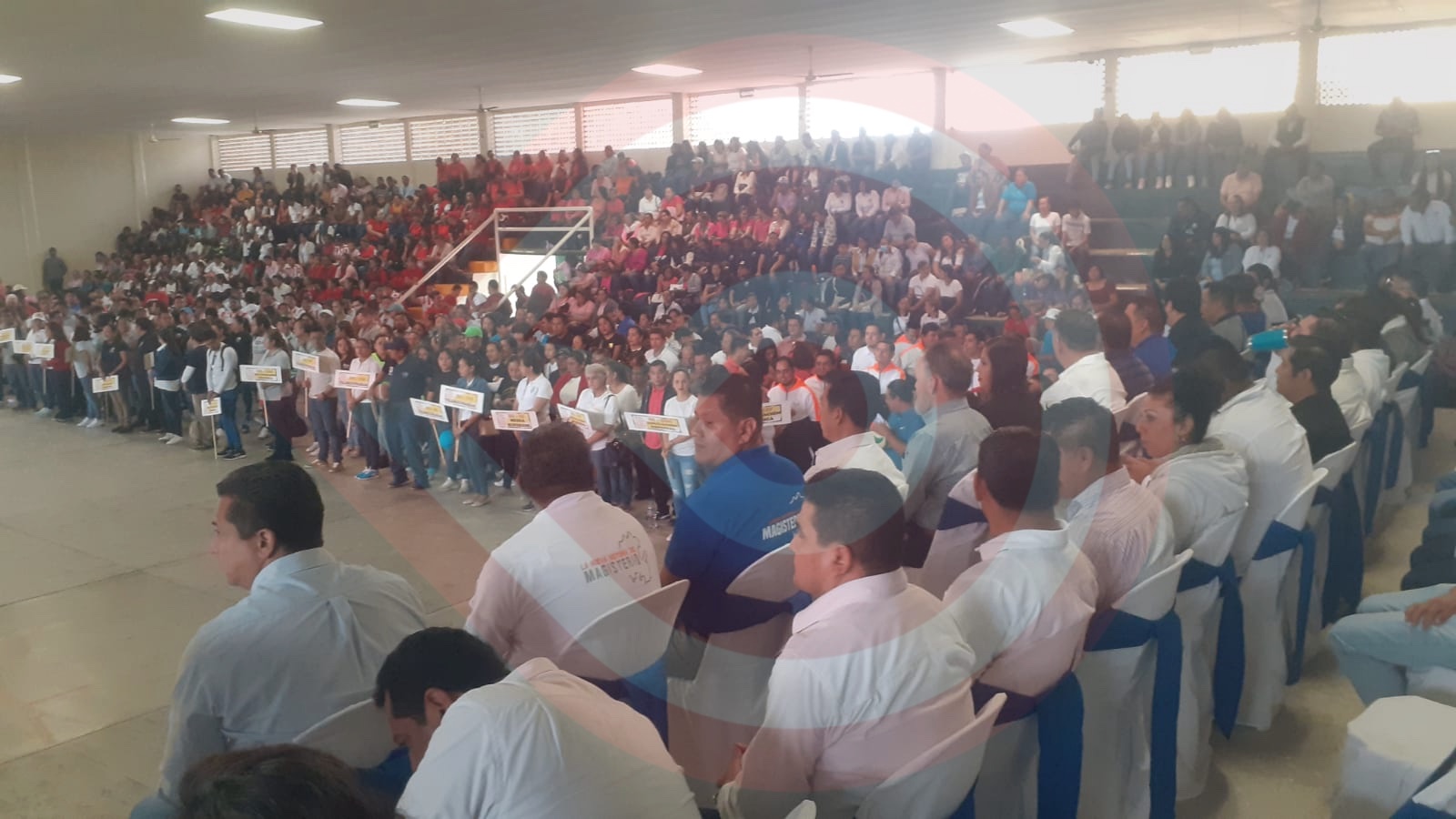 Más de 4 mil docentes estuvieron presentes y tras el saludo a nuestro lábaro patrio y entonando el Himno Nacional Mexicano (en español, y en Náhuatl), posteriormente presentaron a los invitados de honor, y Héctor Salas Rivera fue el encargado de encender el pebetero con la llama Olímpica, mientras daban a conocer una remembranza de su persona.