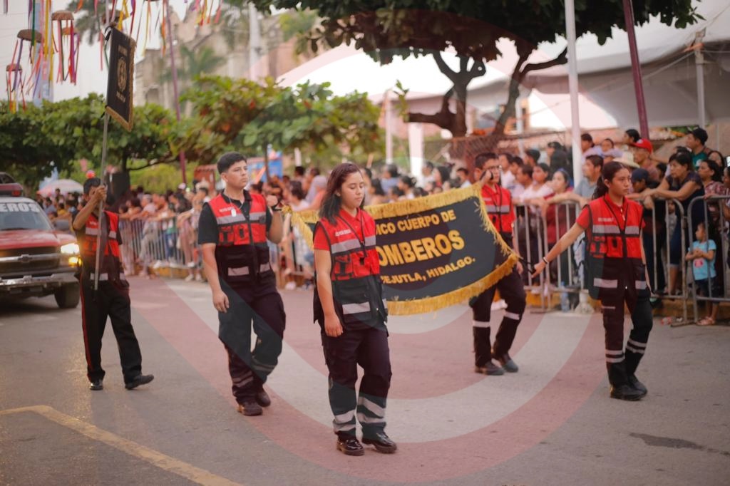 Entre sombreros, carrilleras, carabinas, adelitas; además de tablas rítmicas, cuadros deportivos, bailes y demás números presentados durante el desfile, cerraron los contingentes, las dependencias de salvamento de Bomberos Huejutla y Cruz Roja Mexicana, así como un grupo de jóvenes cabalgantes.