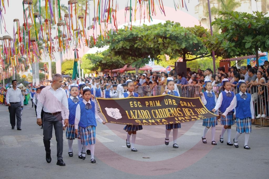 El presidente municipal, Daniel Andrade Zurutuza, fue quien presidió el desfile acompañado por funcionarios municipales, regionales y estatales, así como autoridades educativas, civiles y militares.