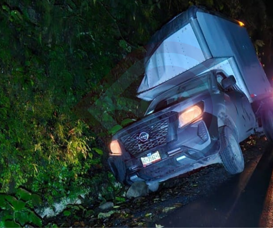 Camioneta se salió de la cinta asfáltica y chocó contra el paredón de un cerro en la sierra de Tlanchinol.