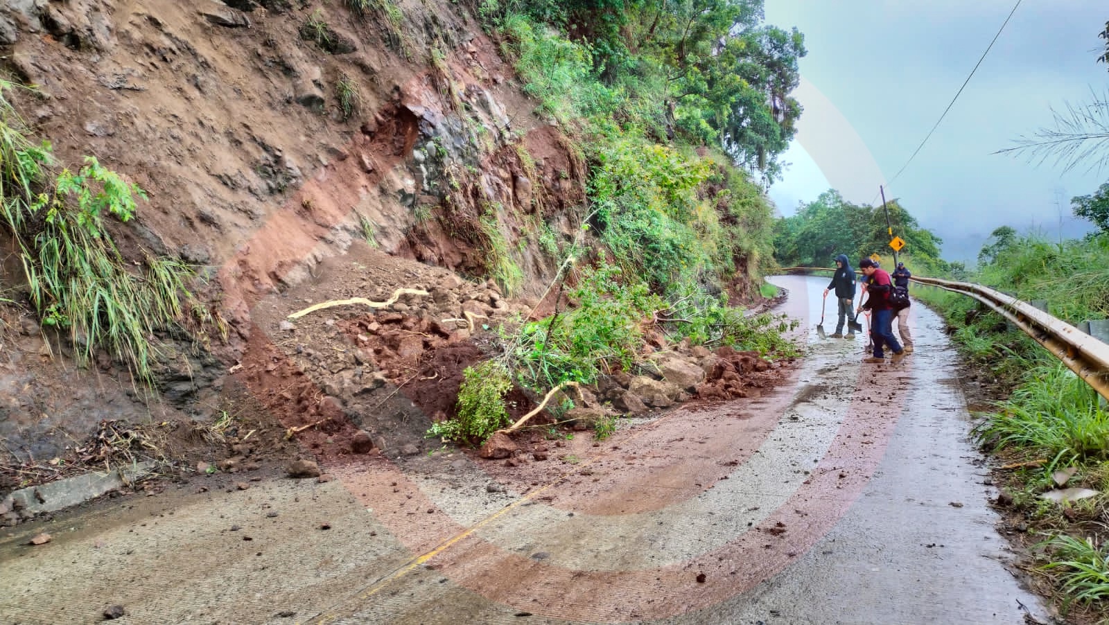 Por lo antes expuesto, el funcionario de auxilio solicitó a los conductores tomar las debidas precauciones y circular con velocidad moderada, debido al pavimento mojado y al derrumbe que se presentó a la altura de la cuesta.