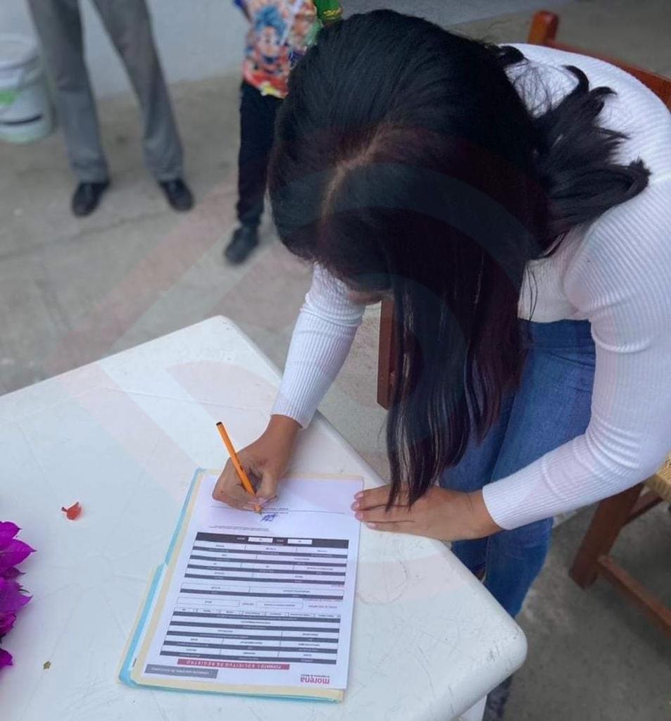 Yahualica, Hgo. – Alvara Hernández, joven mujer originaria de la comunidad de Magocuatitla de esta municipalidad, se registró al proceso interno de Morena, a fin de seguir trabajando en unidad con todos los yahualiquenses, por lo que una vez hecho su registro se le entregó su constancia.