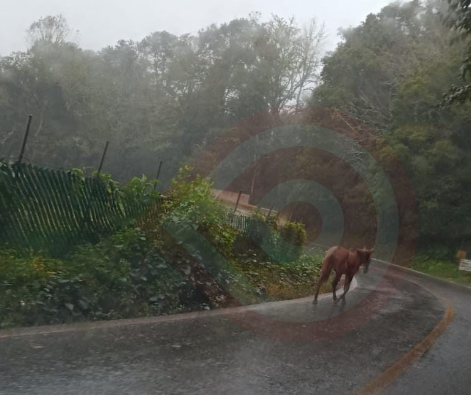 Asimismo, unos caballos, deambulaban antes de llegar a la cabecera de Tlanchinol, donde también por poco provocan accidentes, debido a la poca visibilidad ocasionada por la densa neblina y llovizna que se está presentando en esta región de la huasteca y sierra hidalguense.