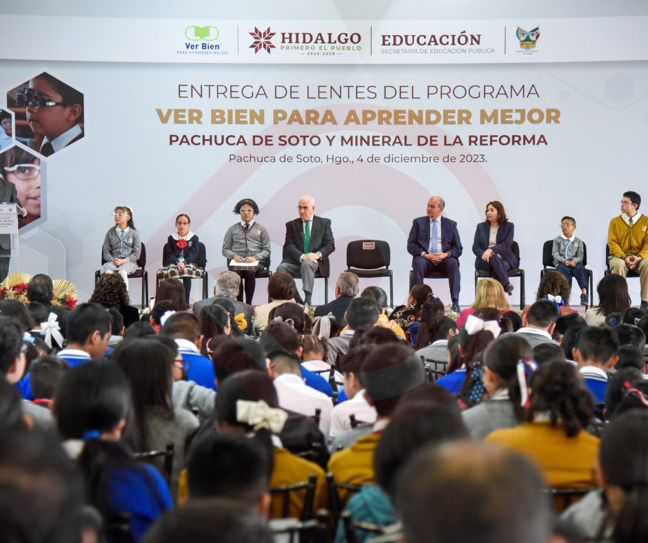 Pachuca de Soto, Hgo.- Mediante un esfuerzo coordinado entre el gobierno de Hidalgo y la Fundación Ver Bien para Aprender Mejor, el mandatario estatal, Julio Menchaca Salazar, encabezó la entrega de 13 mil 223 lentes a estudiantes de educación básica, con el propósito de afrontar la problemática que incide en el aprendizaje y en la deserción escolar de las y los alumnos con alguna debilidad visual.