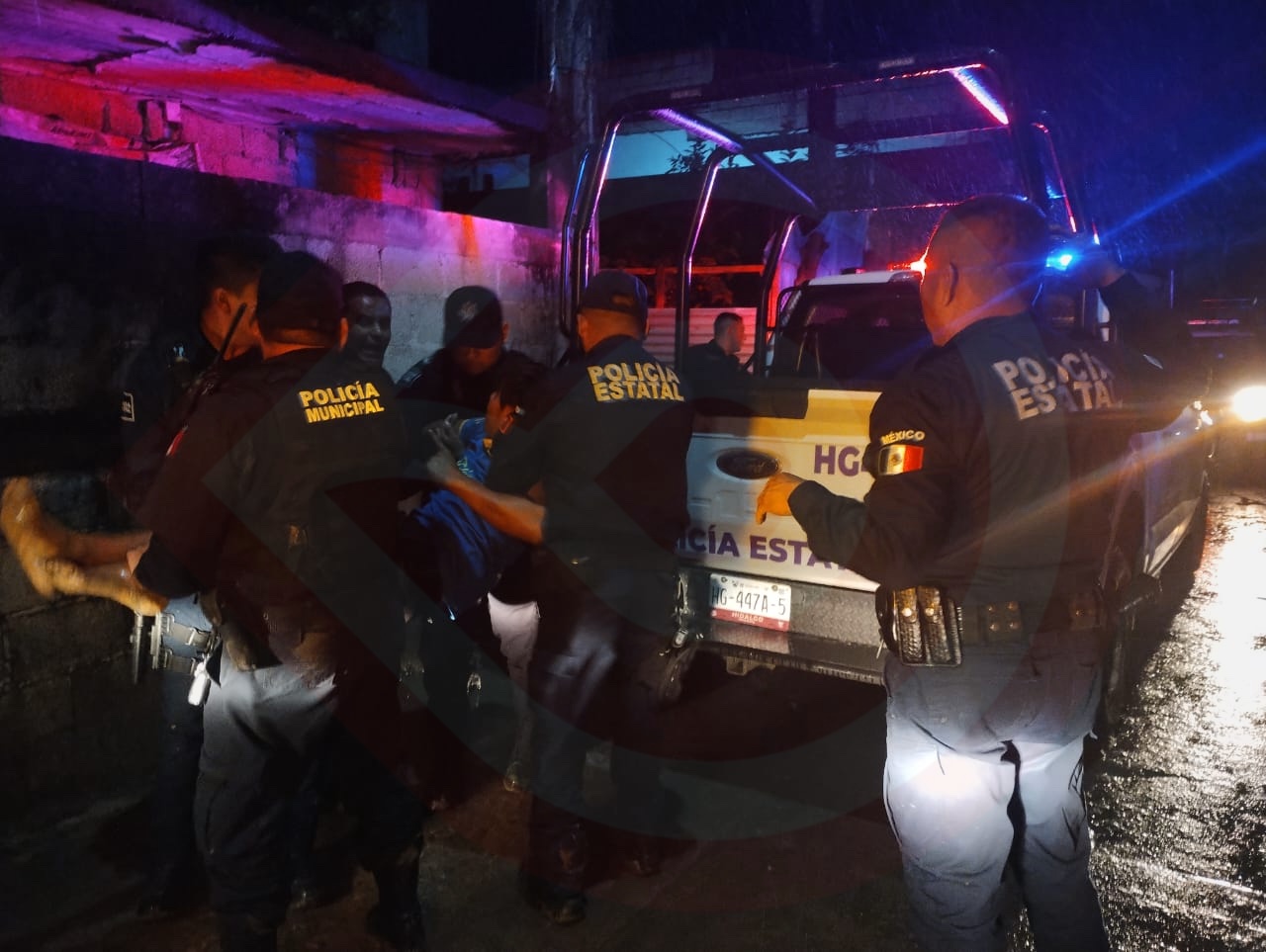 Asimismo, acudieron Policías Estatales y Municipales que, con autorización de la dueña de la vivienda, entraron para sacar al presunto agresor y llevárselo detenido a la delegación, no obstante, el individuo se comportó agresivo y renuente, pero fue sometido por los uniformados.