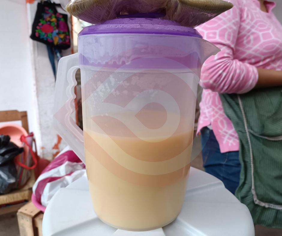 Esta rica bebida se prepara con maíz y agua, donde como primer paso se limpia la mazorca, enseguida se desgrana y se muelen los granitos de elote con un molino de mano, para después colarlo y ponerlo a hervir acompañándolo con piloncillo.