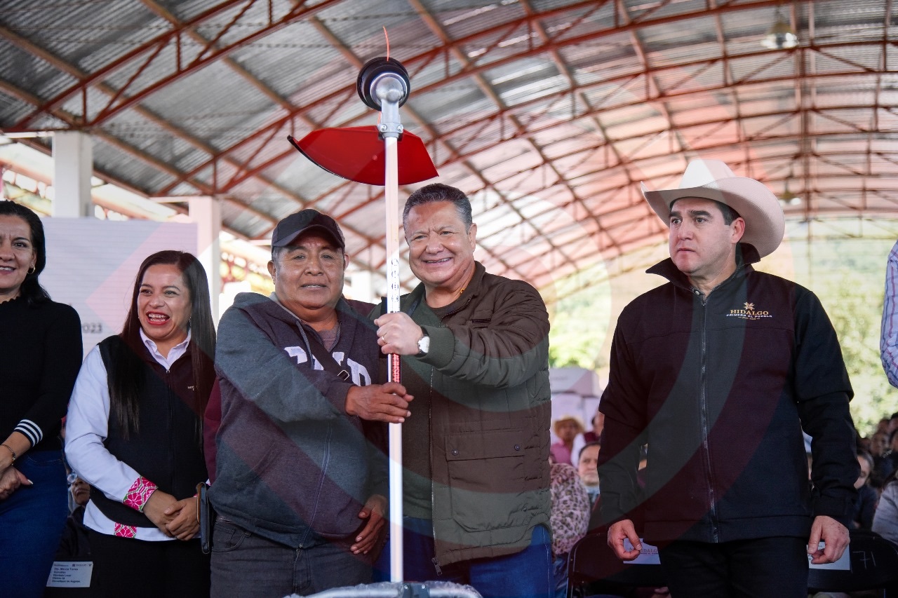 Napoleón González Pérez, titular de la Secretaría de Agricultura y Desarrollo Rural, enfatizó que el objetivo de esta administración es terminar con la pobreza, por lo que dio a conocer que en Calnali se ha apoyado a productoras y productores mediante la entrega de árboles frutales, semillas, granos, equipamiento agrícola, fertilizante, entrega de abejas y también se realiza la construcción de una olla de captación de agua.