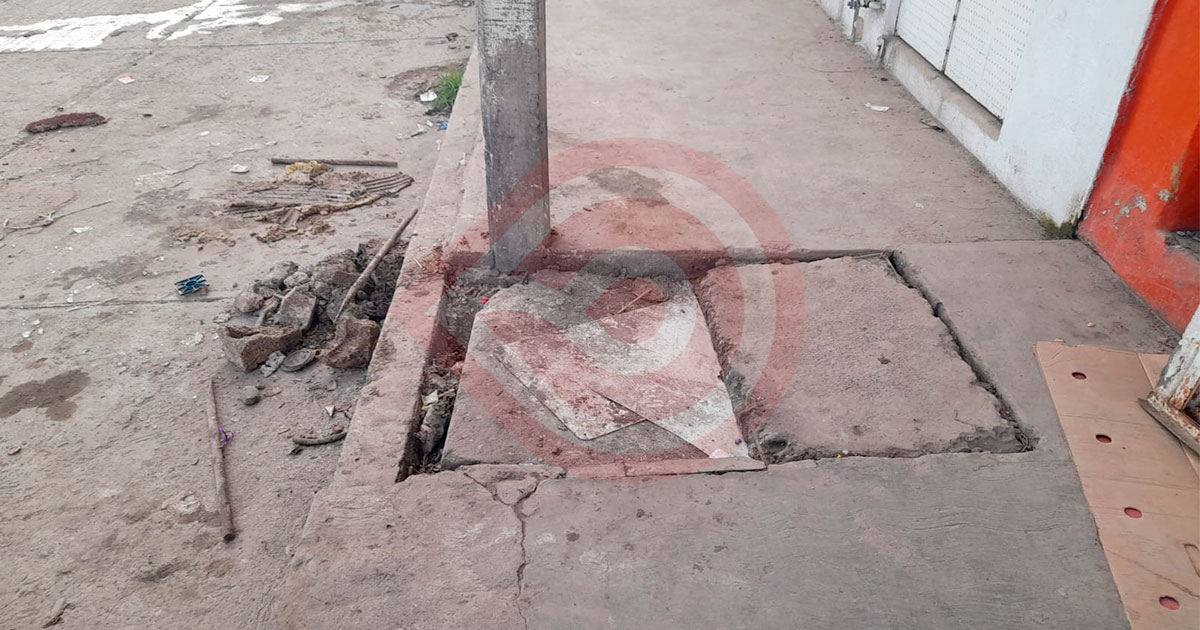 Explicaron que ambas cubiertas están centímetros más abajo de la superficie, pero una se encuentra ladeada, lo que ha ocasionado que varias personas hayan tropezado y caído, no obstante, por suerte -aclaró-, únicamente con resultados de contusiones y raspones.