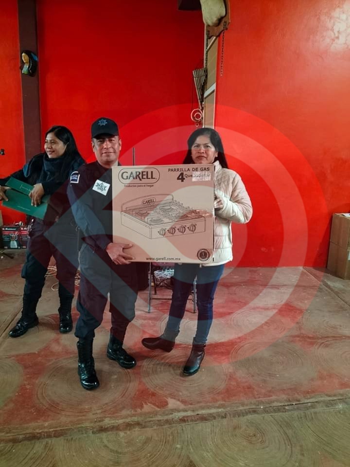 En compañía de la presidente honoraria del SMDIF, Domitila de la Cruz Martínez, los guardianes del orden recibieron electrodomésticos y algunos presentes, esto en agradecimiento y reconociendo su labor en el municipio, donde han mantenido la paz social.