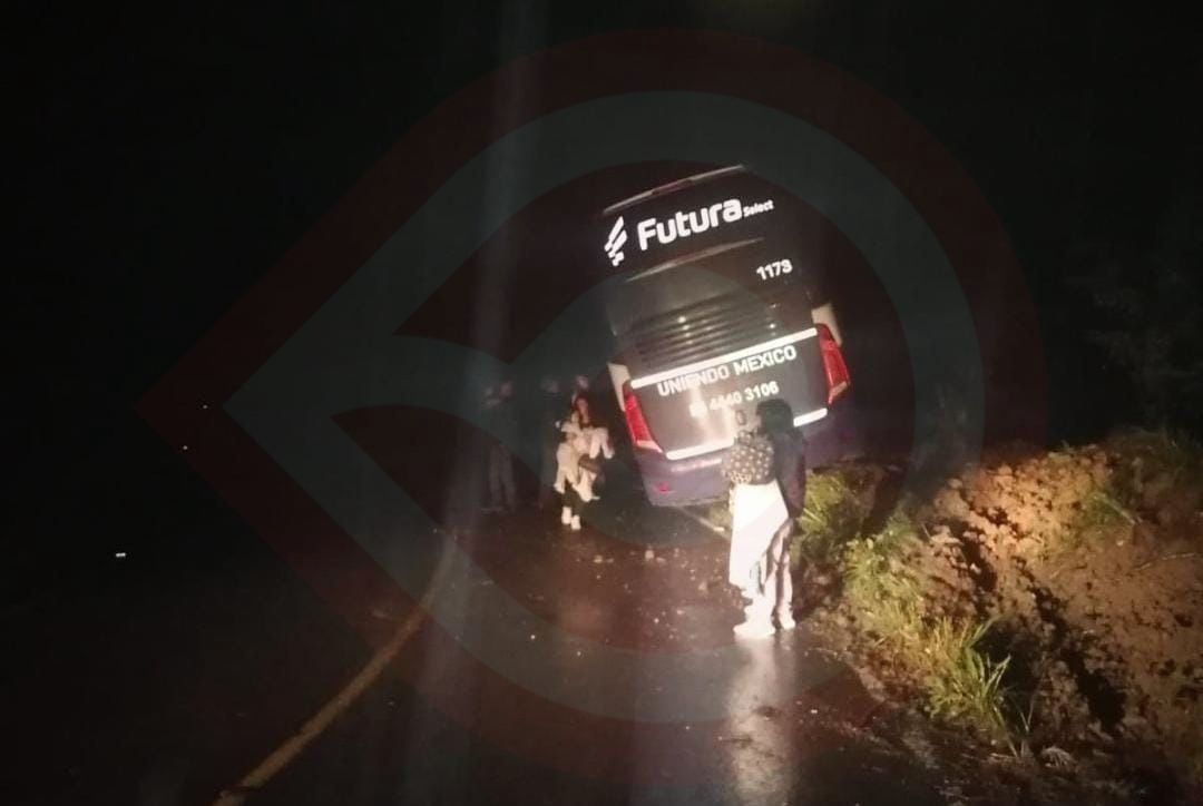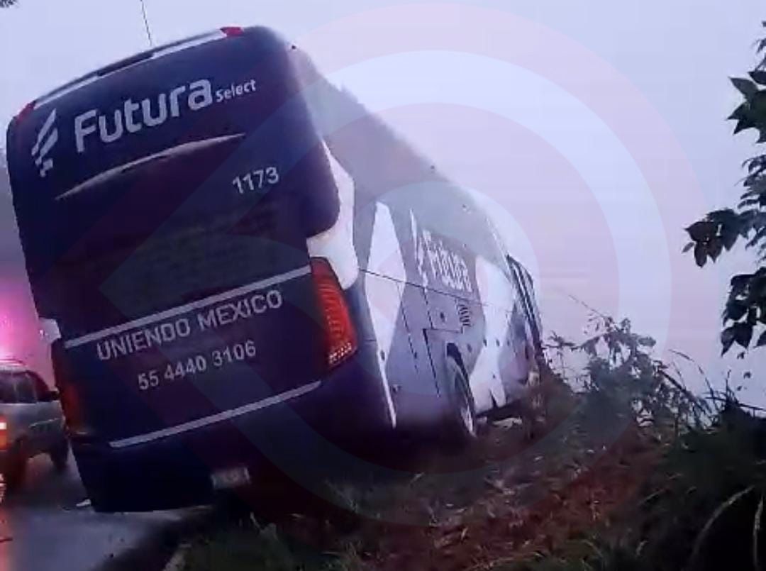 Huejutla, Hgo.- Un autobús Futura que circulaba en la carretera estatal Coacuilco – San Felipe Orizatlán, se salió de la cinta asfáltica y estuvo a punto de caer a un barranco.