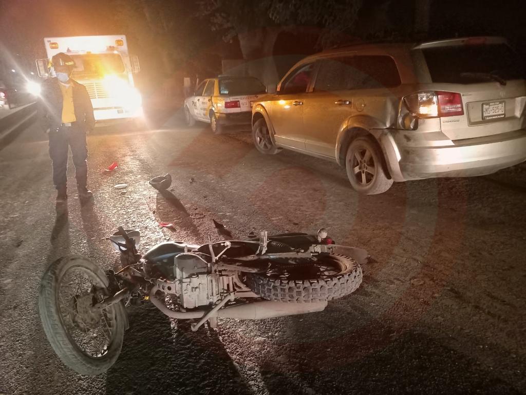 El vehículo de dos ruedas se impactó en la parte trasera de una camioneta Dodge Journey, con placas de circulación HMS-525 del estado de Hidalgo.