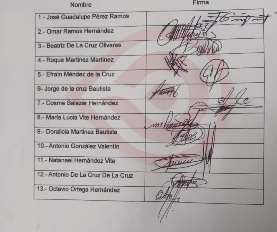 Los involucrados en este paso decisivo son José Guadalupe Pérez Ramos, Omar Ramos Hernández, Beatriz de la Cruz Olivares, Roque Martínez Martínez, Efraín Méndez de la Cruz, Jorge de la Cruz Bautista, Cosme Salazar Hernández, María Lucía Vite Hernández, Doralicia Martínez Bautista, Antonio González Valentín, Natanael Hernández Vite, Antonio de la Cruz de la Cruz y Octavio Ortega Hernández.