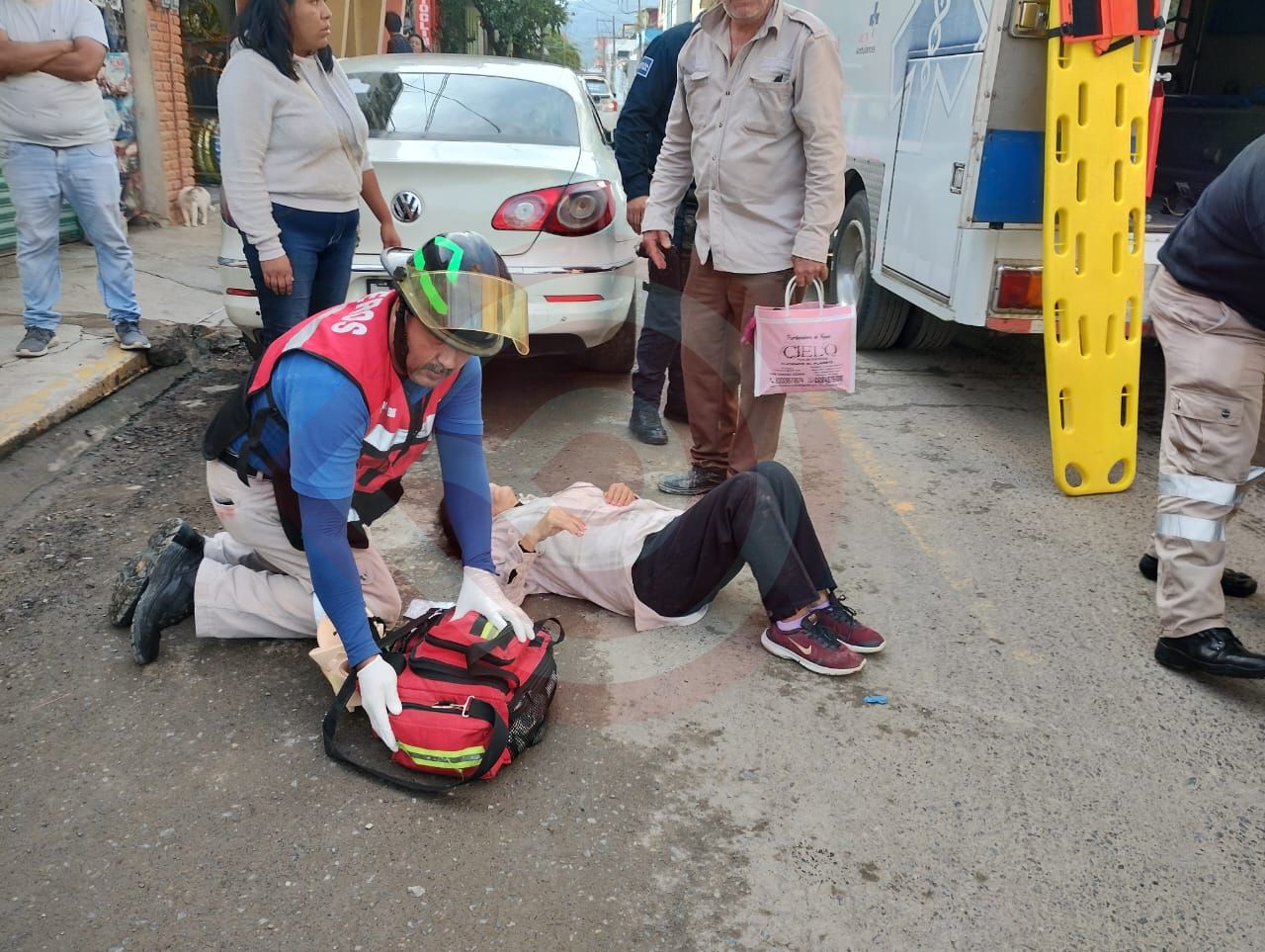Las personas atropelladas de nombres Celia N. y Ezequiel N., ambos de 70 años de edad, con domicilio en la zona centro de Chalma, Veracruz fueron atendidas y trasladadas a una clínica particular por paramédicos del Heroico Cuerpo de Bomberos.