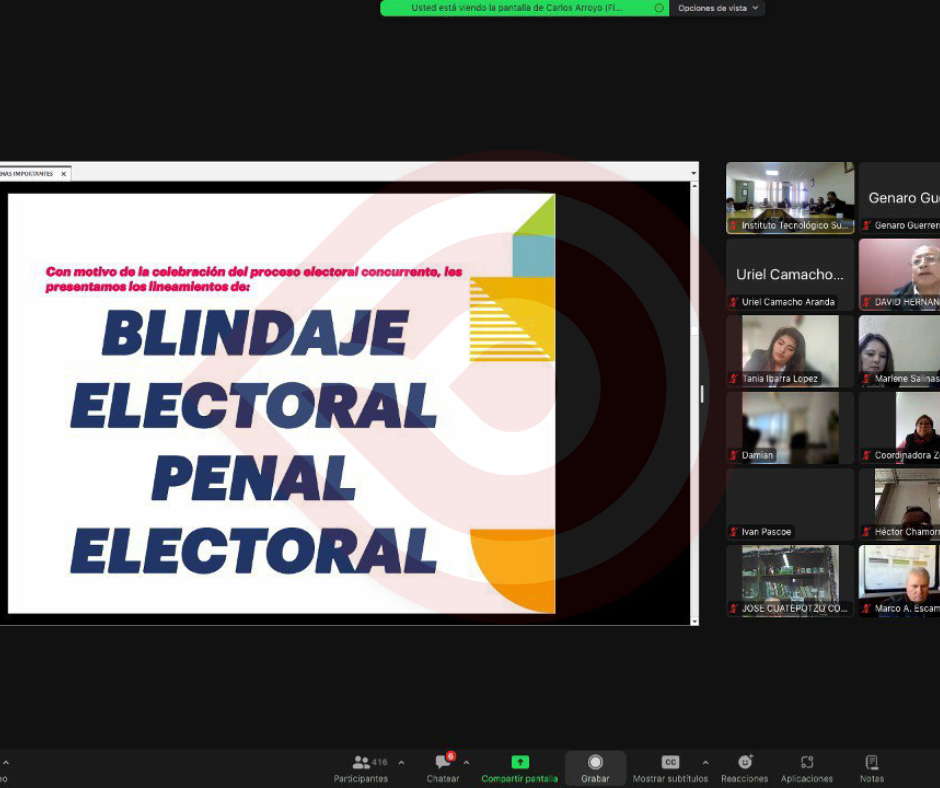 Las y los servidores públicos del sistema educativo estatal accedieron al programa “Capacitación virtual en materia de prevención del delito electoral, atención a la violencia política contra las mujeres en razón de género, blindaje electoral, despliegues ministeriales y fomento a la cultura de la denuncia, en el marco del proceso electoral concurrente 2023-2024”.