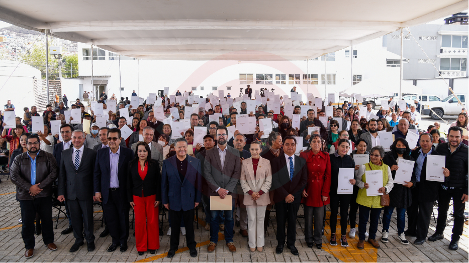 Durante el acto celebrado en la capital hidalguense, el mandatario afirmó que a partir de hoy estas familias cuentan con la seguridad de tener un patrimonio reconocido ante la ley.