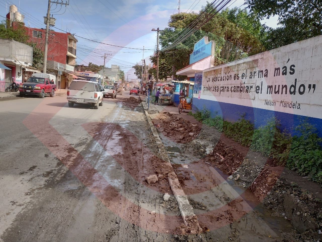 Refiere que, los alumnos de la primaria Fidel Rodríguez, son los más afectados porque las banquetas están totalmente destruidas y además hay una excavación en la entrada de la institución educativa que pone en riesgo a los niños.