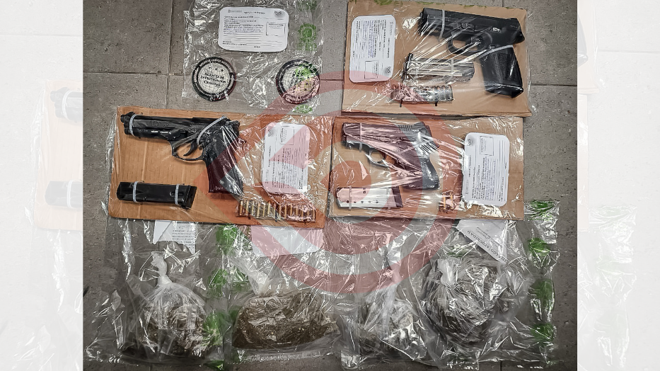 A los implicados, identificados con las iniciales J. A. G. C., de 27 años de edad, originario de la Ciudad de México; M. C. D., de 23 años de edad, y A. A. Z., de 23 años de edad, ambos del estado Campeche, les fueron aseguradas 18 dosis de droga con características propia de la marihuana, tres armas de fuego y dos insignias similares a las de la Agencia de Investigación Criminal de la Procuraduría General de la República, por lo que fueron puestos a disposición de la autoridad competente para el curso de las investigaciones.